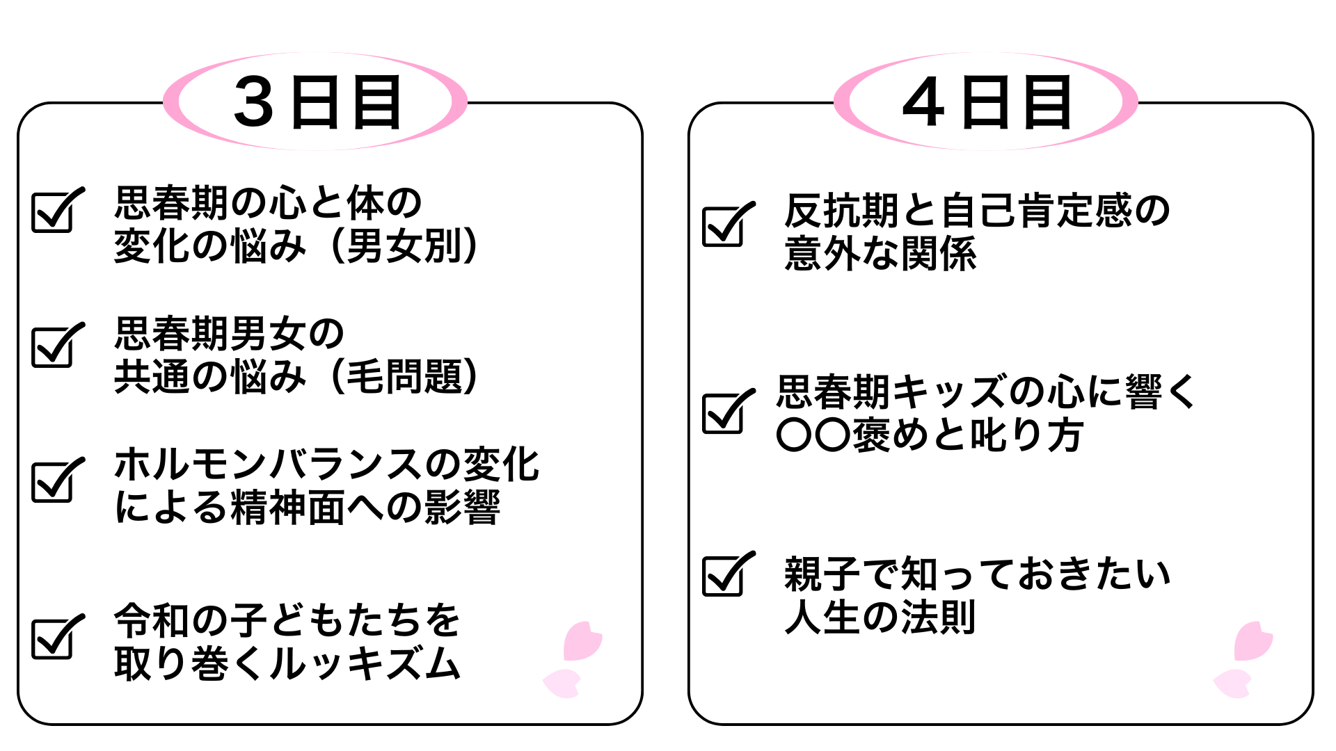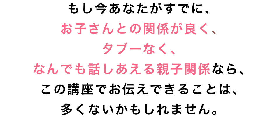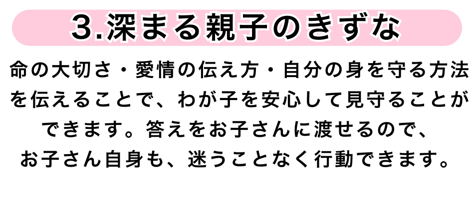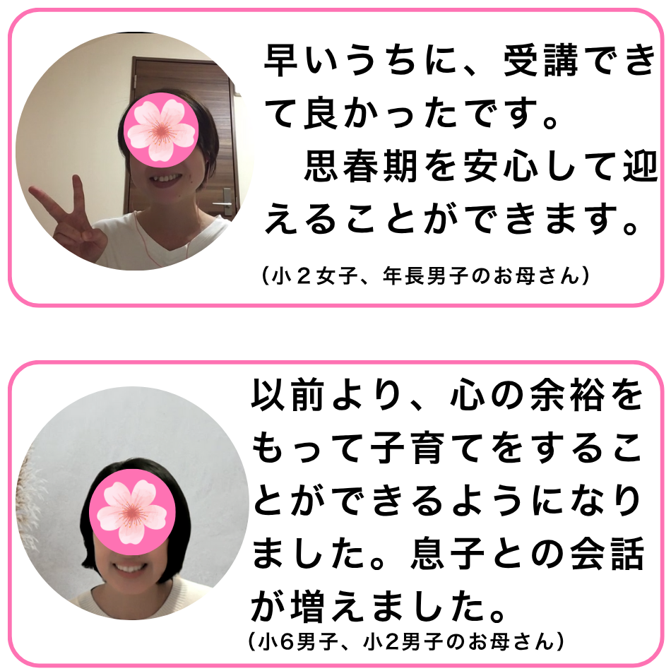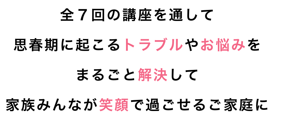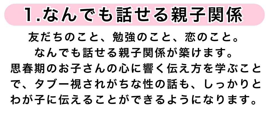 思春期のお悩みを解決する方法が、まるごと入っており、しっかりと対話ができるようになるだけでなく、将来お子さんが自立していくための知識と『一生ものの親子のきずな』の両方を、一気に叶えることができます。